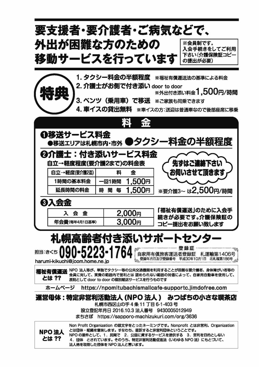 札幌高齢者付き添いサポートセンターの新価格について 2019.9.23